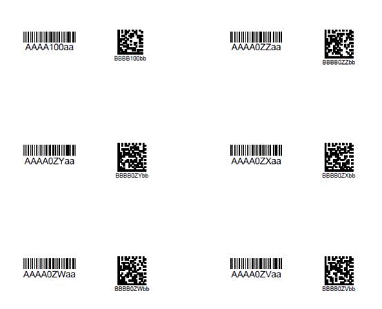 如图,有个条码,起始条码分别是:AAAA100aa,BBBB100bb,100是流水号部分,流水号采用的33进制,2个条码都有前后缀。
