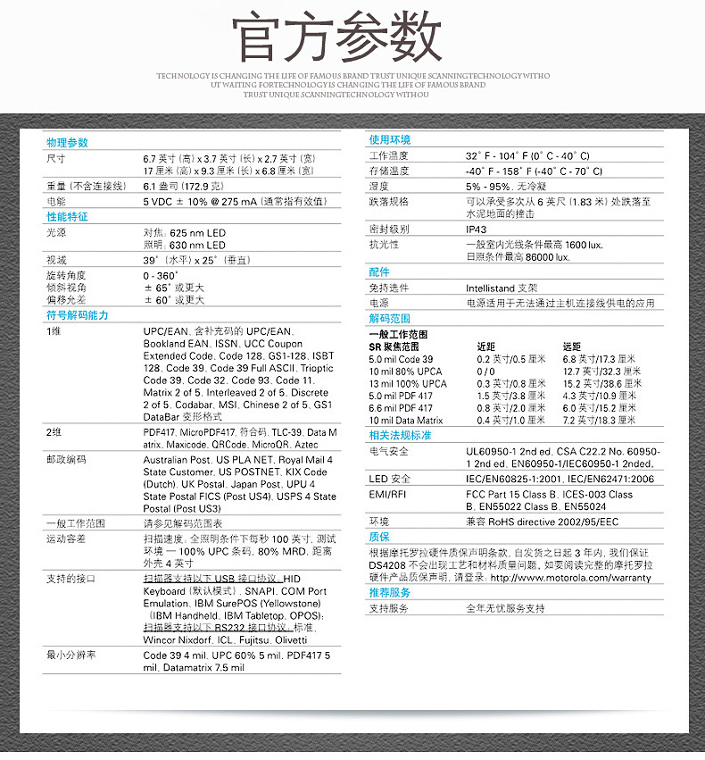 Symbol讯宝DS4208二维扫描枪手持式读码枪超市收银快递