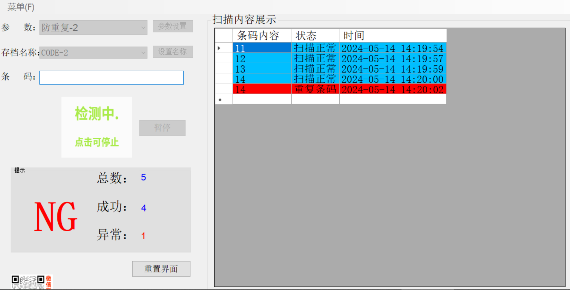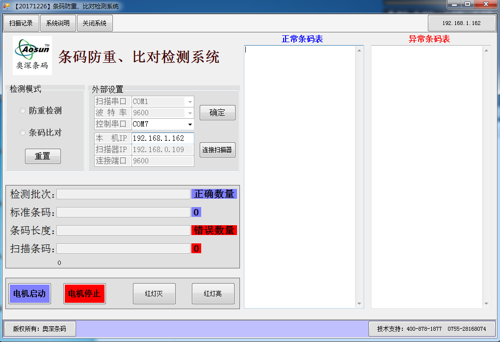 2、流水号条码检测、防止混入其他批次产品,及重复条码产品;