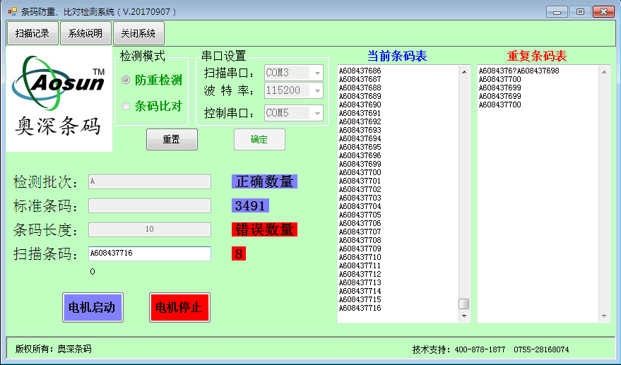1、重码检测判断、缺码或少码检测判断,确保商品在出厂后条码不重复性。