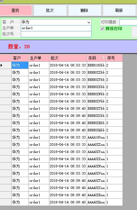 可以按客户、批次、按生产单、查询打印过的数据。